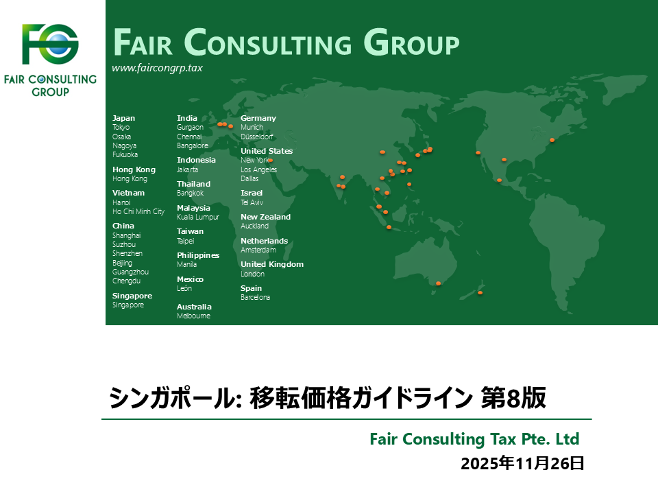 税理士法人フェアコンサルティング(シンガポール事務所)においては、Regional Director (International Tax)として、主として移転価格アドバイザリーサービスを、シンガポール含め東南アジア地域の日系企業に提供。